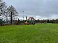 De eiken tussen hockey en golf zijn gekandelaberd (zo kort gesnoeid, dat ze op kandelaars lijken!!), dit om het nieuwe water-kunstgrasveld de eerste jaren minder te belasten!